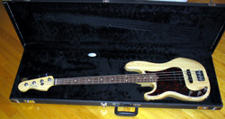 Fender Hot Rodded USA Precision Bass. Sounds fabulous and is in excellent condition including its flight case EUR 750 plus mailing. Tom Morrison (France) 07/2005 |
