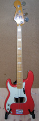 Fender 50 anniv precision bass us made, near mint condition, red metalic color, genuine hard case, obviously left handed. I am located in the south suburb of paris 850 euros contact: pierrecorval@cegetel.net / France 06/2005 |