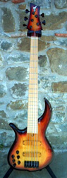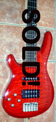 Riverside 5 string bass lefthanded basswood body red maple quilt top with MM + Jazz pickups and active preamp in mint cond with gig bag. 250 euros Kings / Ireland 02/2006 |