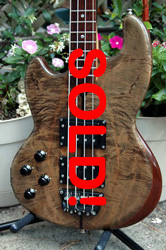 Wal Mach III This is an awesome Mach III 4-string with a high-gloss translucent finish over figured maple front (birdseye maple back). The bass also features an ebony fretboard and gold hardware. Buyer pays all shipping and insurance. $2500 Contact Steve Chesney at walman01@comcast.net. 04/2006 |