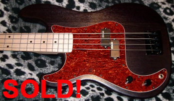 Custom made left handed p bass which was put together by a local luthier. Ash body with a maple neck and fingerboard in a lovely satin finish which is very fast and comfortable to play. All black hardware with mighty mite bass tuners and a chunky gotoh style bass bridge. Graph tech nut installed & tortoise shell pick guard. EMG select humcancelling p bass pickup. These pickups are very underrated and sound just as good as some of those boutique brand pickups. Lovely purple natural stain. Labella flatwounds and a nice padded gig bag. Will ship worldwide and i pack up professionally 200 plus shipping Contact Kings: kinglarocque1@yahoo.ie (Ireland) 05/2009 |
