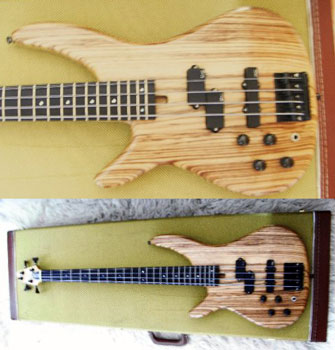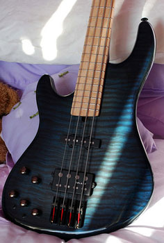Steve Kendall Delta Bass Ash body with figured Beli front. 24 frets ebony extra long 35inch scale lenth. P-J confifuration EMG actives. Kendall custom 2- band eq. £950.00 or nearest offer + shipping contact: ColBassMan[at]aol.com 09/2011 |