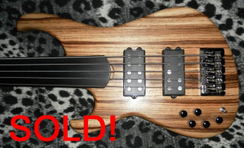 Left Handed Custom Zebrawood/Blackwood TBC 5 String fretless. Handmade in the