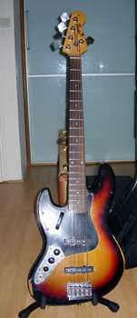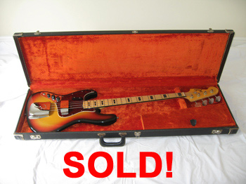 Fender Jazz Bass 1974 Here is a really nice and actually rare Fender Jazz Bass 1974. The bass is in excellent condition except for the control plate that is a little bit bent but doesn't affect reliability. It comes with a plastic Fender HSC but not original from that era. This bass is in mint condition and all original. Comes with the thumb rest and the 2 chrome covers that I took out for my style of playing. These will be included of course. The pearl inlays are rare on that type of bass and I do prefer the look and sound