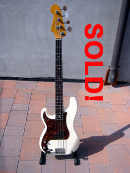 Fender USA lefthanded Precision Hotrod bass, made in 1999-2000 at Fender's Corona facility in California. Fitted with Lindy Fralin pickups which sound awesome and a Leo Quan Bad-ass II bridge for increased sustain. Body has some scars from many gigs, but damage is purely cosmetic. I have 100% positive feedback on Ebay with over 900 ratings. Bass is located in Peterborough, England. £850 plus shipping cost, buyer is welcome to collect. Please contact Barry at barroldo@yahoo.co.uk 03/2012  |
