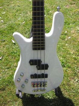 Warwick lefty Streamer LX Beautiful bass that will make you stand out from the crowd on stage! A lovely bass to play. I ordered the custom white gloss from Warwick. I bought several basses in the last few years and due to finances need to sell this one. It has a few small marks which I have photographed but is mostly in exellent condition. The bass cost £1750 new. I will ship the bass in an old hardcase I have. It has had fair use but is certainly useable. I will pad it well so will be safe for shipping. Could collect without it and without shipping if willing to collect in London. Email me for more pics. price £999 rubber_ritchie[at]yahoo.co.uk Measurements of case with bass - 122 x 41 cm/ 8 kg 04/2012  |