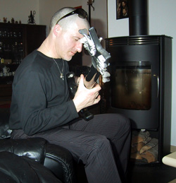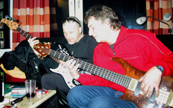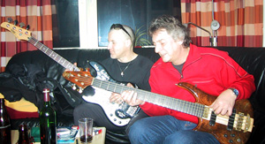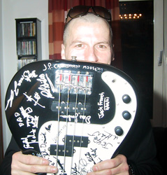 Unglaublich, aber wahr! JP (Jean-Pierre) und ich stehen seit 2005 miteinander in Verbindung. In seinen Emails schilderte JP mir von seinen Bands, mit denen er die Welt kennen gelernt hat (was den meisten von uns wohl versagt bleibt). Darüber hinaus hat JP viele Musikprojekte ins Leben gerufen, wie zum Beispiel einige Soloprojekte, die Band "One" mit der in Japan produzierten CD "Even", die Band Deaf Dealer usw. Von Beginn an war JP von der Idee begeistert, eine Webseite für Linkshänder in das Internet zu stellen und beglückwünschte mich zu meiner Idee. Einige Wochen später schrieb JP, er wollte sich von seinem Alembic Essence 5-Saiter trennen und ich sollte ihn erhalten. Nun ja, einen Alembic möchte fast jeder von uns sein eigen nennen. Jedoch bezahlt man so etwas nicht mal eben aus der Portokasse. So mußte ich mich entgegen meinem Gelübde von zwei Instrumenten trennen und zusätzlich den Sparstrumpf öffnen. Über den Preis waren wir uns einig, nur der Transport mit all den damit verbundenen Problemen mußte gelöst werden. Das war jedoch für JP kein Problem. Er wollte den Alembic persönlich von Kanada nach Deutschland bringen. Gesagt, getan! Am 28.01.2006 traf JP hier ein. Im Gepäck den Alembic. Leider hatte er kaum Zeit und konnte nur über Nacht in Bielefeld bleiben. Schon am nächsten Tag ging der Flug wieder in Richtung Montreal / Kanada. Noch Fragen?! Die knappe Zeit verbrachten wir natürlich im Kreise meiner Bässe und Familie. Mein Sohn Daniel kam spät abends von Studioaufnahmen nach Hause und leistete uns Gesellschaft. Einige Bilder von diesem wunderschönen Abend könnt ihr hier sehen. Hope to see you soon in Canada, JP! |