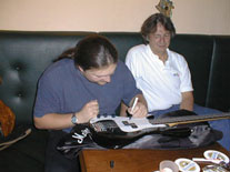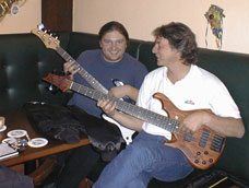 Armin Klopfer lernte ich durch eine Anzeige im Internet kennen. So wie ich, suchte auch er einen AmStd. Fender Jazz Bass. Bislang haben wir beide keinen LH-Jazz gefunden. Armin spielt in einer schwäbischen Blues Band und lebt in einer wundervollen Gegend. Dabei studiert Armin in Ulm, kommt aber am Wochenende nach Dillingen. Wir waren von Dillingen mächtig beeindruckt. Wenn es mal ein Lefty-Treffen geben wird - dann dort!! Armin Klopfer came to know me from an ad on the internet. Like me, he was looking for an American standard Fender Jazz Bass. For a long time, neither of us had found a left-handed model. Armin plays in a German-dialekt ("Schwaebischen") blues band and lives in a wonderful region. There Armin studies in the town of Ulm and comes to Dilligen on the week-end. Dillingen left us with a powerful impression. If ever a Lefty encounter takes place, that's the place to be! |