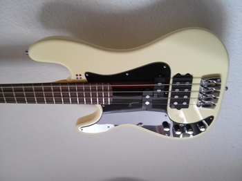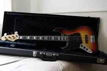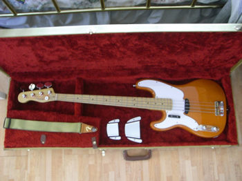 1976 Fender Jazz in Sunburst with a black guard beautiful maple neck and a dark Rosewood fingerboard with pearl blocks & white binding Great player with a superb tone 2000 Euros plus shipping Contact robert66777@aol.com 06/2016 |