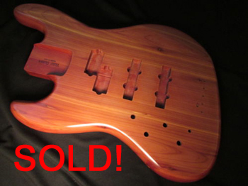Left handed bass body I had Made in the USA by Victor Guitars. Eastern Red Cedar body, with 3 pickup route p bass neck jazz middle and jazz in the bridge. The red cedar has a story to tell. It came from a tree over 230 years old that came down in a bad storm in 2006. Its over 230 years old cause the guy who salvaged it counted all the rings on the tree. It was then kiln dried and aged. It has a tung oil finish on it and the cedar smells lovely and has a gorgeous tight grain. It has been routed with 2 input jacks and has 5 tone/vol controls holes routed on the front. 199 plus shipping. Will ship registered insured with tracking worldwide and pack professionally. Contact: kinglarocque1@yahoo.ie 05/2016 |